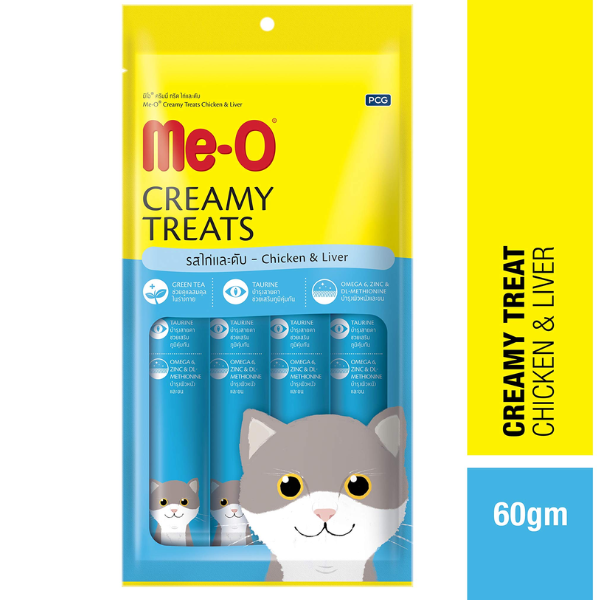 Me-O Creamy Treat Chicken and Liver is designed to add fun to their day. It is important to note that this snack should not be fed as a complete meal for balanced nutrition. To maintain its freshness, always remember to re-seal the product in a bag or reusable container. For optimal storage, keep the food in a cool, dry place, away from direct sunlight.