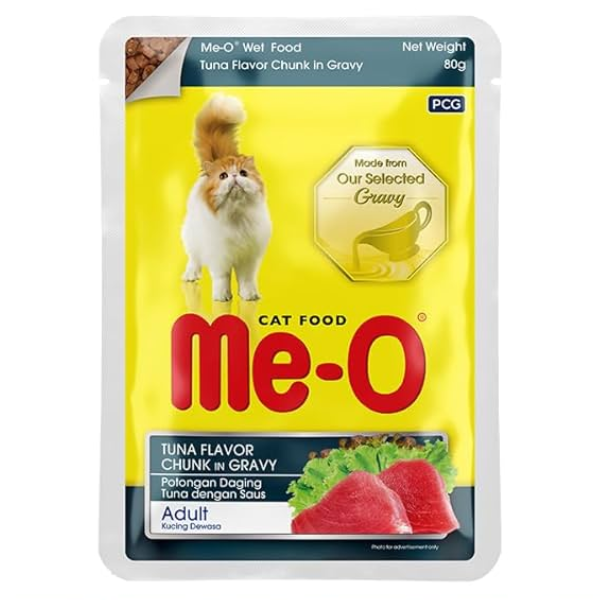 Me-O Adult Tuna Chunk in Gravy is a delicious and nutritious wet cat food made from high-quality tuna. Specially crafted for adult cats, it provides essential nutrients for their overall health, shiny coat, and active lifestyle. The tasty gravy enhances palatability, ensuring your feline enjoys every meal.