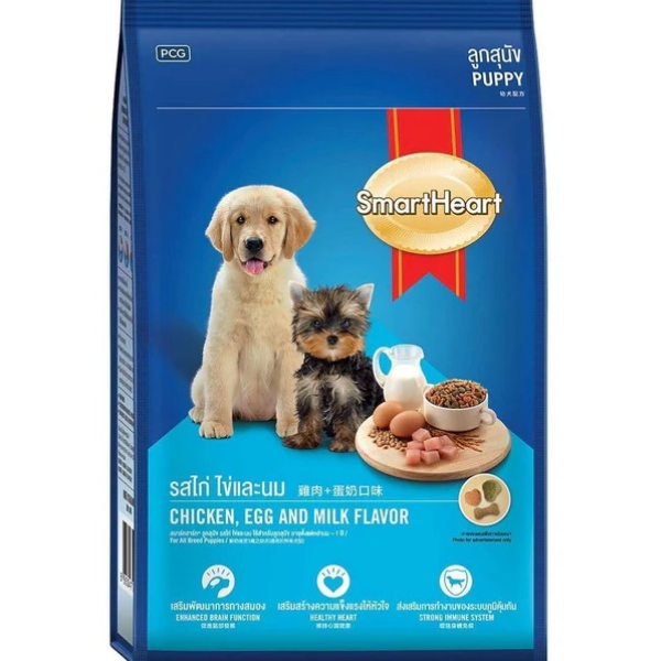 Puppies experience their most rapid period of development during their first years of age. This includes their activities and learning a new challenge. Complete and balanced nutrition is essential for their proper growth and healthy development. Smart Heart puppy food is formulated to meet puppies nutritional requirements using the nutrient ingredients and supplemented with fish oil (rich in DHA and Omega-3 fatty acid) and Lecithin (rich in Choline) to help enhance brain development, nervous system function and heart health .